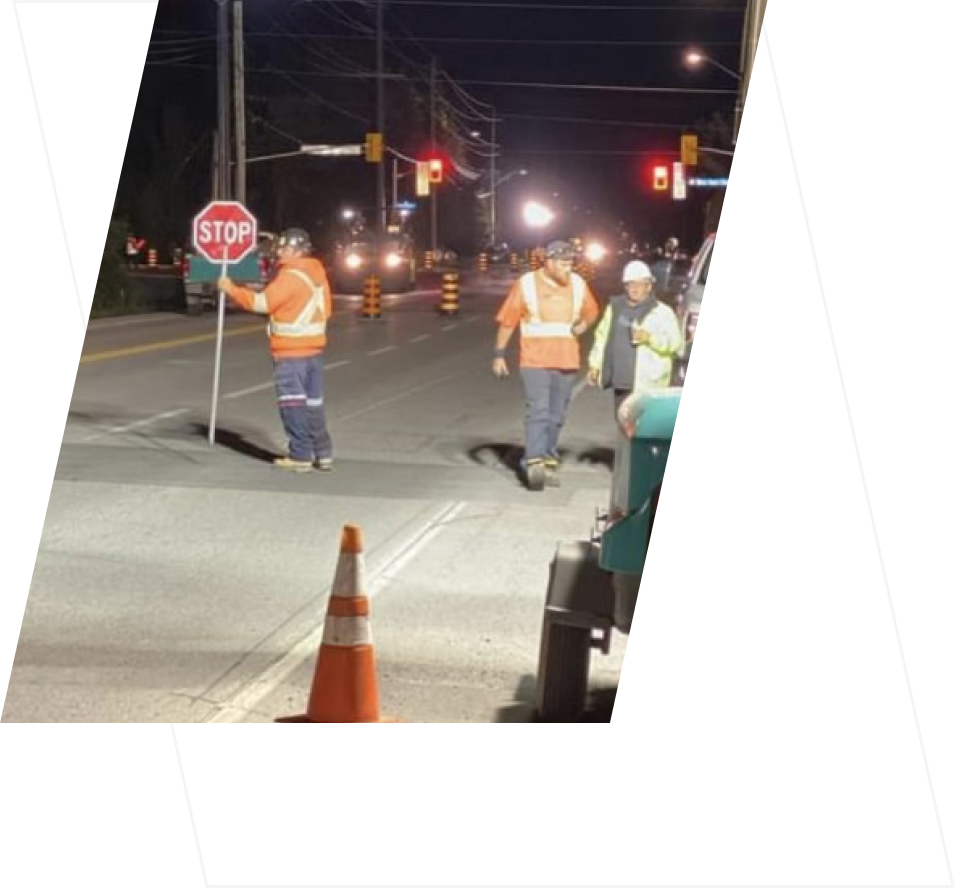 Our traffic control crews manually regulate traffic flow through construction sites to ensure work is completed with minimal disruption while also ensuring the safety of workers and the public. Our experienced traffic control persons are trained in both the set up and tear down of all signage and traffic control devices. We always supply an extra worker to provide breaks and create a safe and stress-free environment so your team can focus on the task at hand.